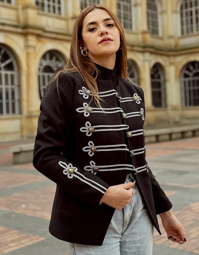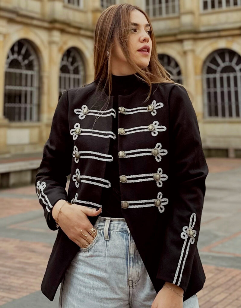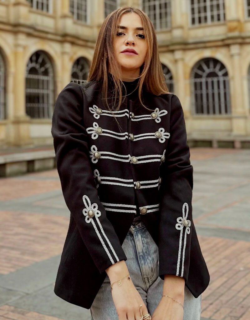 Envuelve tu estilo en elegancia pura. El Abrigo Anastasia está confeccionado en lujoso paño de cachemir negro, con un forro estampado que aporta personalidad y distinción. Sus bolsillos interiores y exteriores lo hacen tan funcional como sofisticado, ideal para acompañarte desde un look de oficina hasta una noche especial.