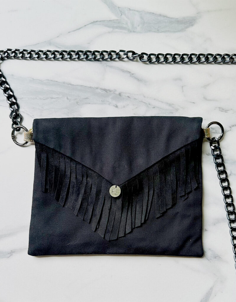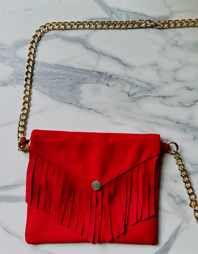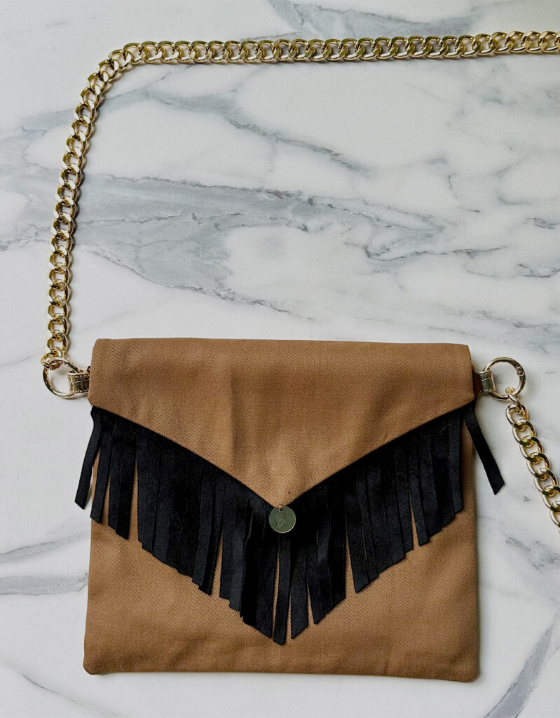 Un accesorio que combina lujo y practicidad. La Cartera Nice está confeccionada en paño de cachemir con un elegante fleco en gamuza que realza su diseño exclusivo. Su forro satinado y los bolsillos interiores aportan funcionalidad, mientras que la cremallera asegura tus pertenencias. La cadena dorada añade un toque sofisticado que convierte esta cartera en el complemento perfecto para cualquier ocasión.