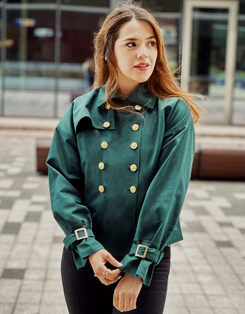 La Chaqueta Éloise es una prenda de diseño exclusivo hecha en Colombia, confeccionada en dril de alta calidad. Incluye forro estampado, bolsillos interiores y elegantes hebillas en las mangas, logrando un equilibrio perfecto entre estilo, comodidad y durabilidad. Ideal para mujeres que buscan una chaqueta versátil y con detalles únicos para elevar cualquier look.