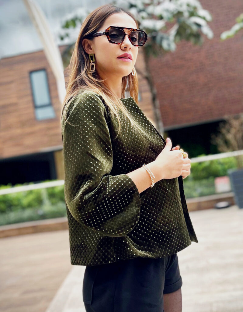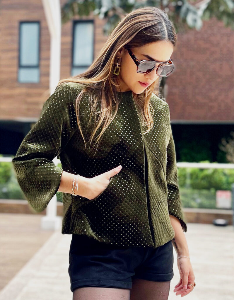 Brilla con sofisticación. La Chaqueta Charlotte combina la suavidad del terciopelo con el encanto luminoso de las lentejuelas, creando una prenda que roba miradas. Con bolsillos interiores y exteriores para máxima practicidad, es perfecta para noches especiales o para añadir un toque de glamour a tu look diario.