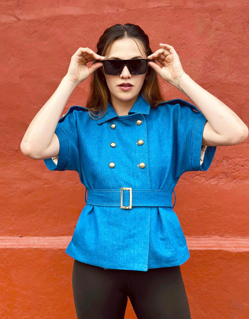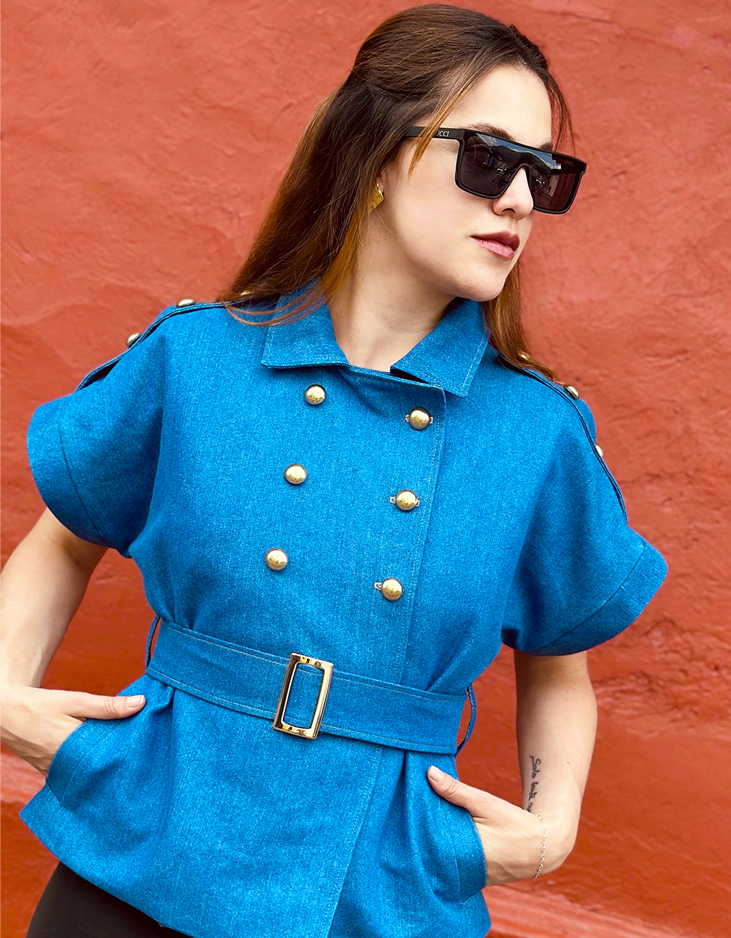 Un clásico reinventado con carácter. La Chaqueta Denis está confeccionada en denim de alta calidad, con botón metálico que aporta un toque distintivo y cinturón que define la silueta. Su forro interno y bolsillos interiores brindan comodidad y funcionalidad. Una prenda versátil y moderna, perfecta para elevar tus looks diarios con estilo.