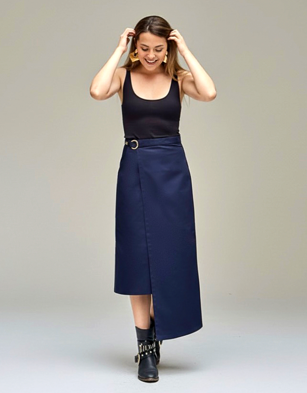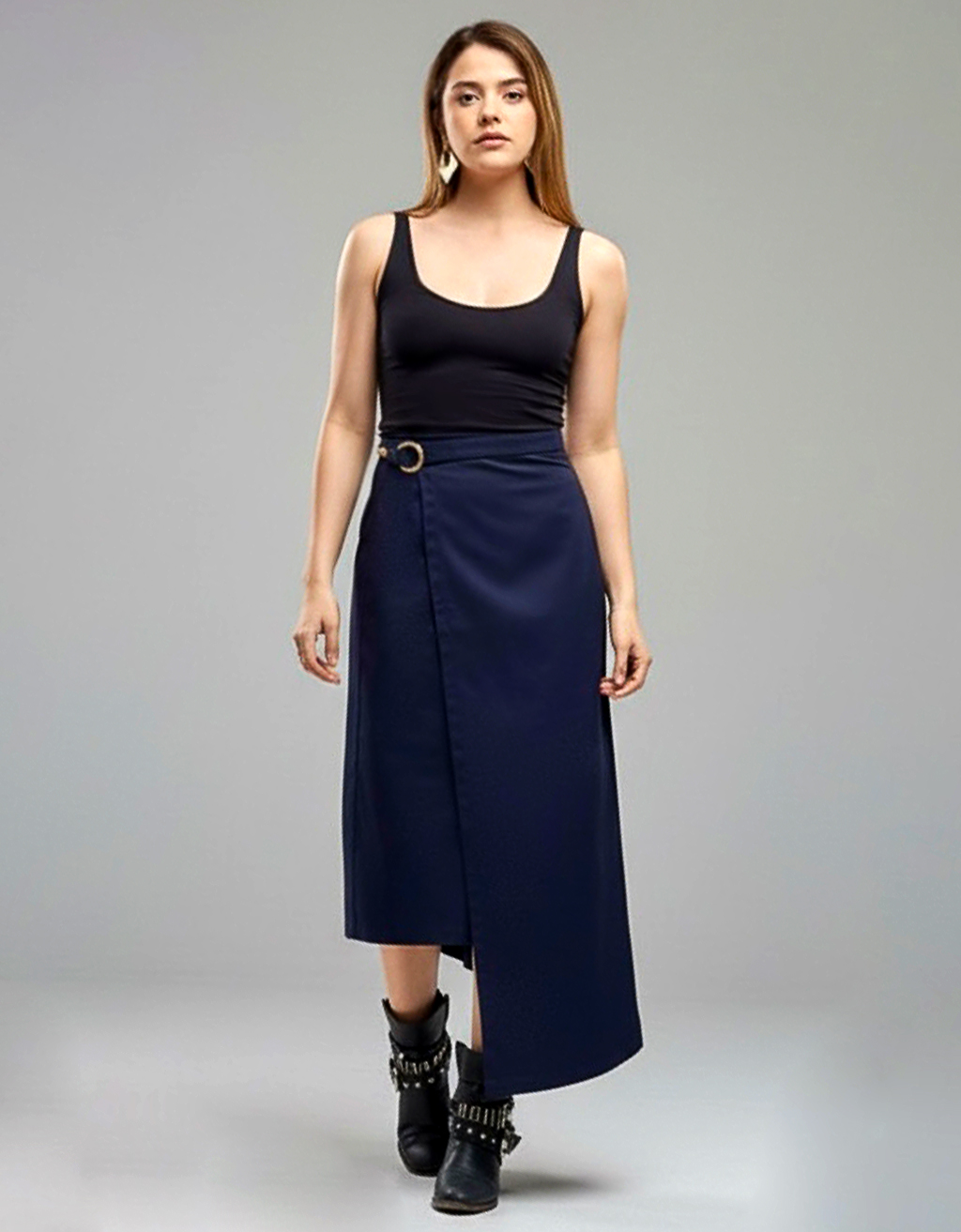Dale un giro audaz a tu estilo. La Falda Éloise está confeccionada en resistente dril, con una hebilla ajustable que realza la cintura y un corte asimétrico que aporta movimiento y originalidad. Una prenda versátil que combina actitud y elegancia para looks que no pasan desapercibidos.